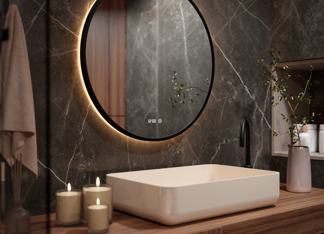 Ikke flere duggede spejle efter brusebad takket være vores spejlvarme. Altid frit udsyn!